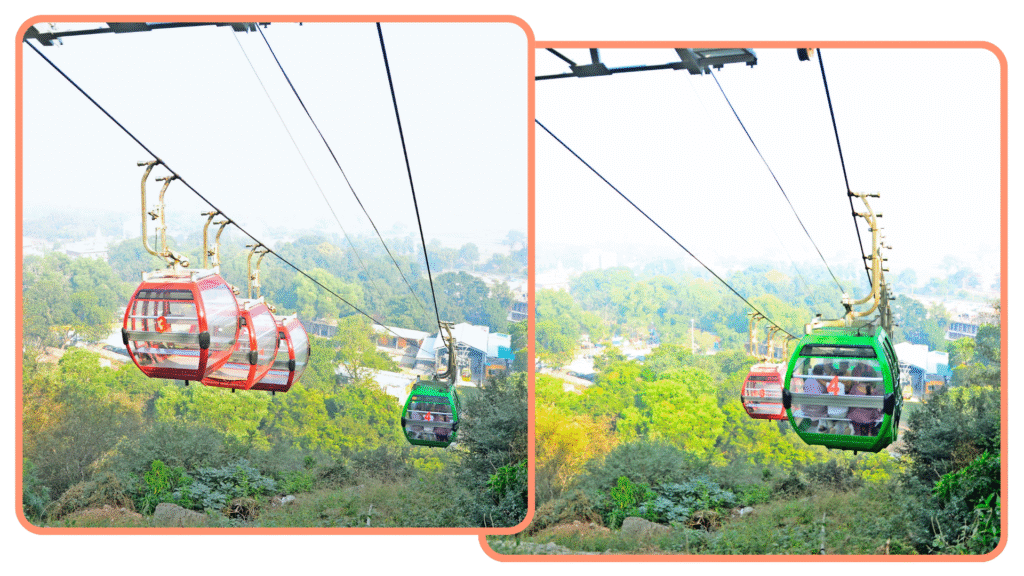 At Radharani Ropeways, our mission is to transform the pilgrimage experience by providing safe, comfortable, and scenic access to the revered Radha-Rani Temple in Barsana, Uttar Pradesh, India. Established as a modern cable-car (ropeway) service connecting the base of Brahmanchal Hill to the hilltop temple, Radharani Ropeways embodies a blend of faith, innovation, and convenience. Our ropeway system spans approximately 300 meters and transports passengers swiftly in comfortable gondolas, each designed to offer breathtaking panoramic views of the surrounding landscape while reducing the effort required to reach the shrine.